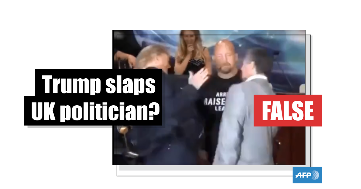 The footage shows Trump posing for photos with a man wearing a grey suit. The man then waves Trump’s tie in his face and flicks his nose, before Trump appears to slap him across the face.
