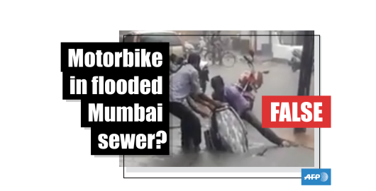Image Published on 19/07/2019 This video of a motorbike in a flooded sewer was filmed in Maharashtra state, not Mumbai