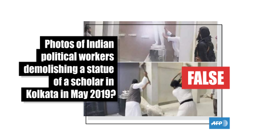 Image Published on 23/05/2019 No, these photos do not show workers from the All India Trinamool Congress demolishing a statue of a scholar in Kolkata in 2019