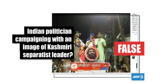 Image Published on 13/05/2019 No, this is not a real photo of a Indian Communist Party politician campaigning with an image of a Kashmiri separatist leader