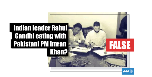 Image Published on 09/05/2019 No, this is not a real photo of India's main opposition leader eating biryani with the Prime Minister of Pakistan.