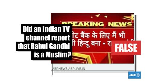 Image Published on 07/01/2019 No, an Indian TV channel did not report that Indian opposition leader Rahul Gandhi is a Muslim