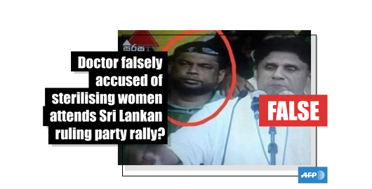 Image Published on 18/10/2019 The man circled in this photo is a parliamentarian for Sri Lanka’s ruling party -- not a doctor who was falsely accused of sterilising women