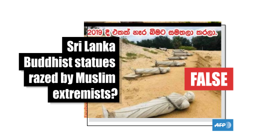 Image Published on 06/09/2019 These statues in Sri Lanka were laid on their side due to heritage restrictions at a temple -- they were not attacked