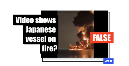 Image Iran Published on 13/04/2026 Video of oil tankers on fire in Hormuz misrepresented as Iranian attack on Japanese ship