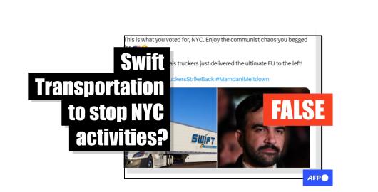 Image US politics Published on 20/11/2025 Trucking company will not stop servicing New York after Mamdani win