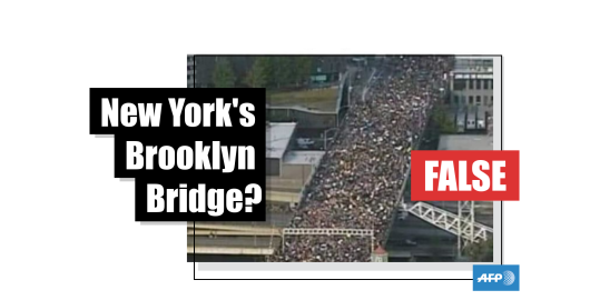 Image Published on 09/06/2020 Photo of crowded bridge does not show New York memorial for George Floyd
