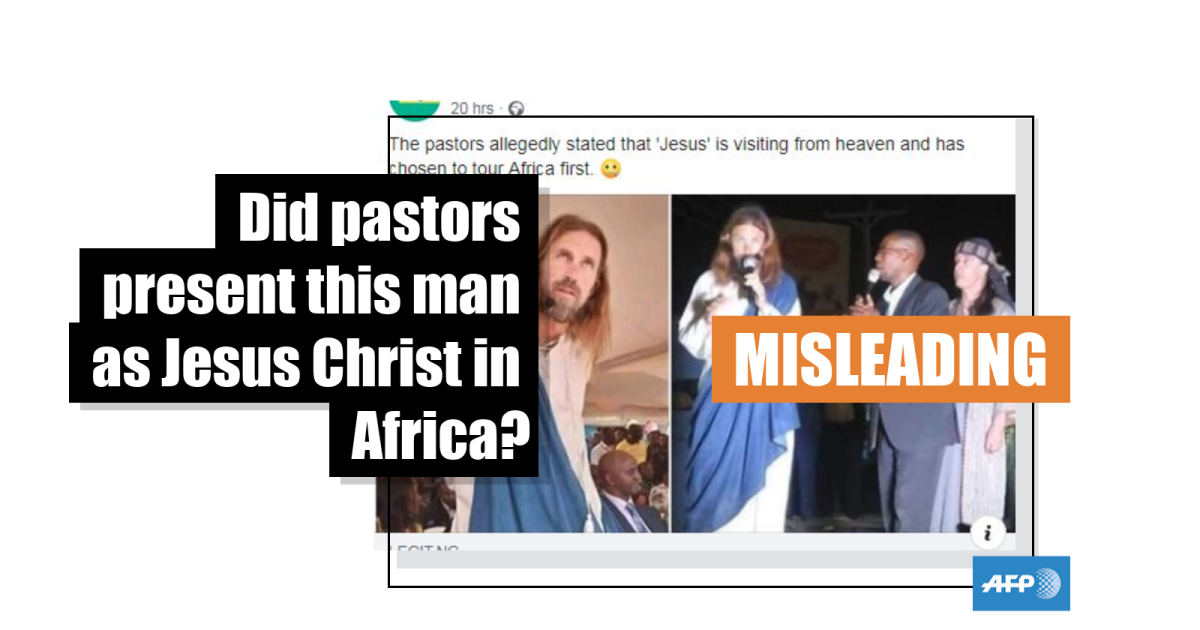 A picture shared by @Desaylor1 on Twitter, archived here, is captioned: “A Kenyan pastor claims he has found Jesus Christ walking on the streets of Kenya. Took the whiteman to his church, gave him a warm welcome and now his church followers are happy that Jesus has finally come back! And lucky for them he landed in Kenya first”.