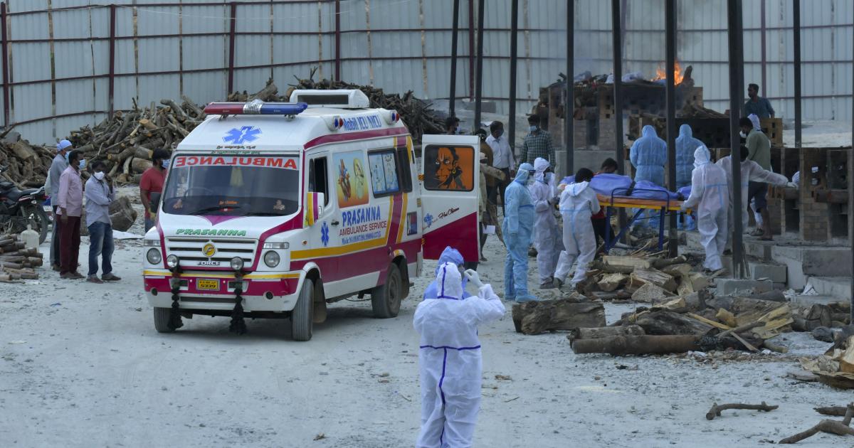 “A Covid-19 dead body was brought in that ambulance and a few family members were standing at a distance watching the funeral,” he said, describing what the photograph actually depicted.