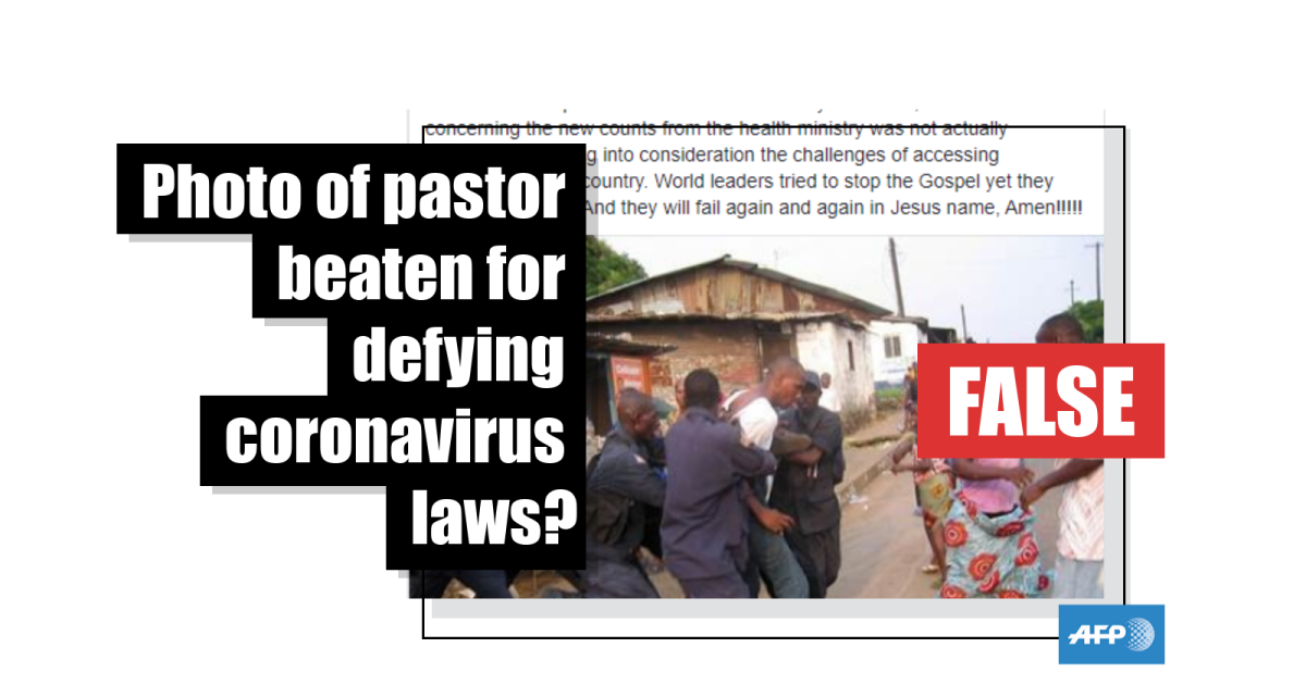 While the claim about police enforcement appears to have some merit, the picture used in the post has nothing to do with COVID-19 nor does it depict a pastor. It was snapped by AFP photographer Zoom Dosso on September 7, 2006, and shows Liberia's national police force arresting a former combatant in the capital Monrovia.