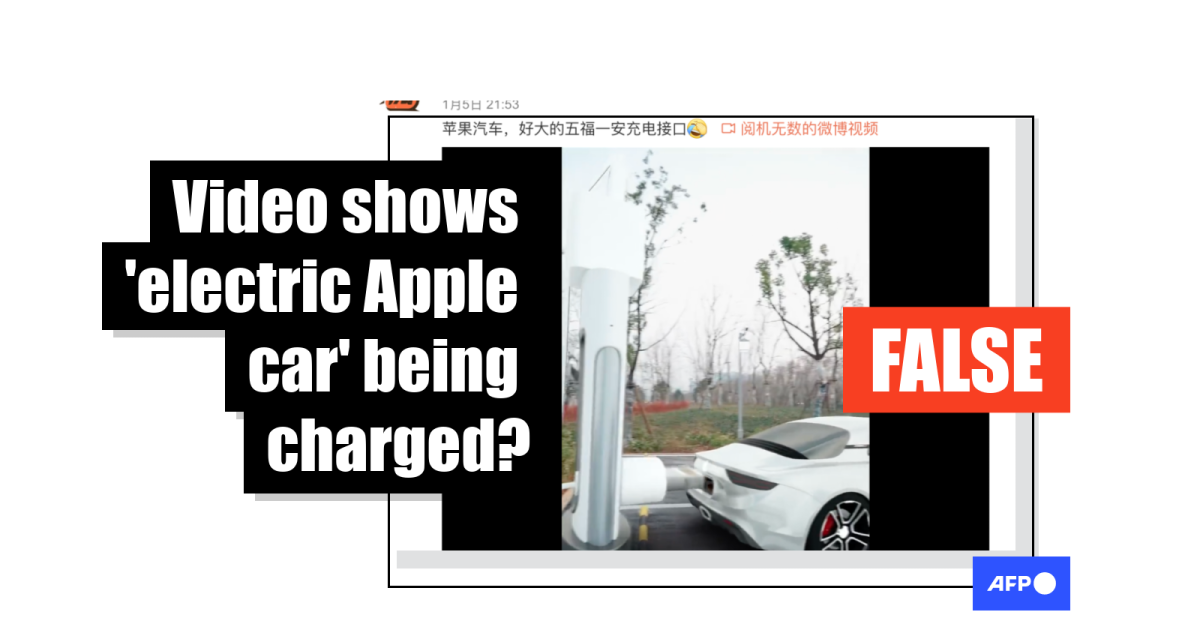 The video purports to show an electric car, labelled as a product from Apple, being charged with a cable.