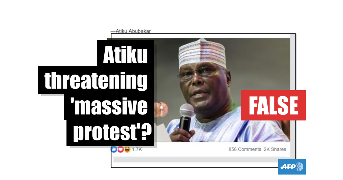 We’ve archived some of the posts, which have together been shared more than 3,000 times, here, here and here. They quote Atiku as saying: “My Server Results Are Authentic and If judges frustrate the Justice we will take over the street. I will lead all Nigerians in a massive protest that mankind have (sic) never witness(sic) before”.