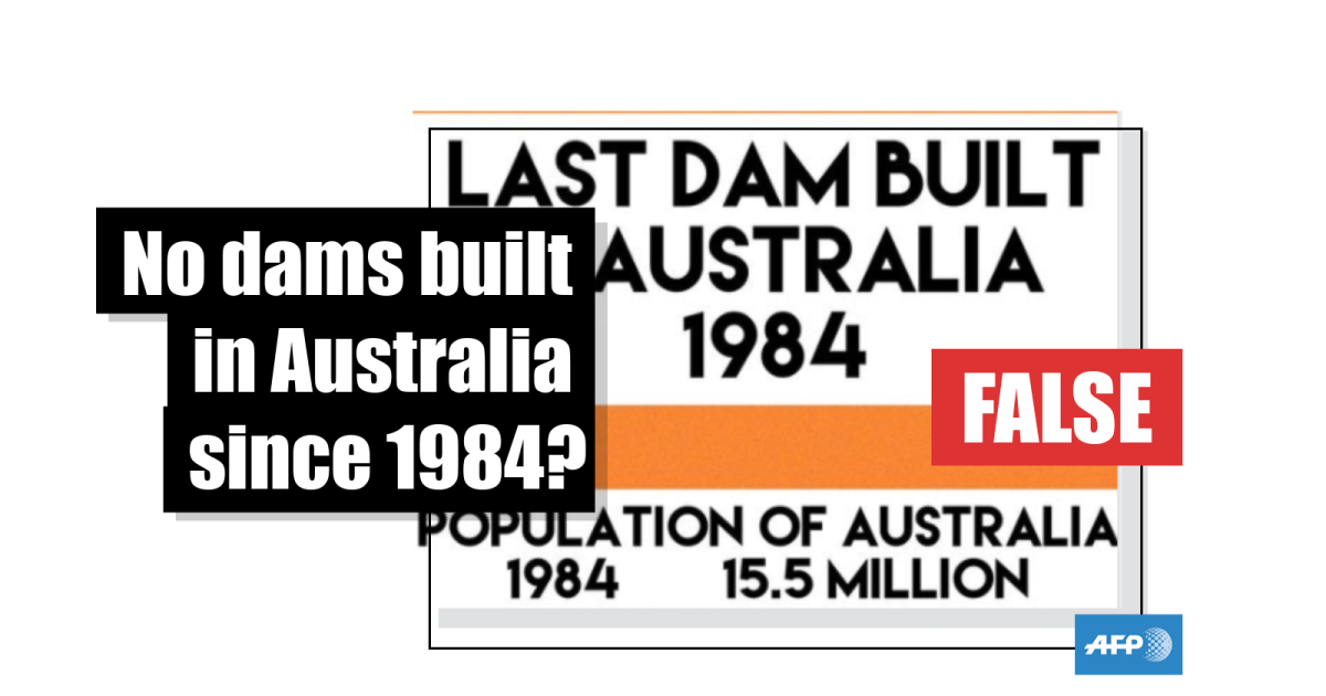 AFP Fact Check has also debunked another misleading post here, which claims Australia has not built a power plant or a major water project since the country’s population doubled.