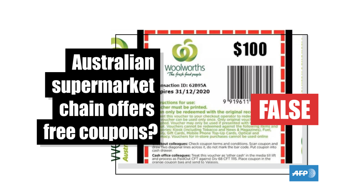 But the coupon is not genuine; Woolworths, Australian authorities and police said it was created as part of a scam.