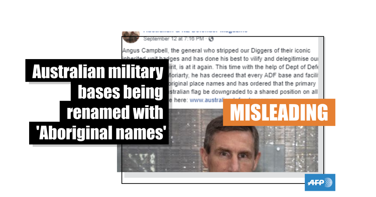 But the posts are misleading; the Australian Defence Force has said Australia’s military bases will retain their existing English names, but their Aboriginal names will also be added.