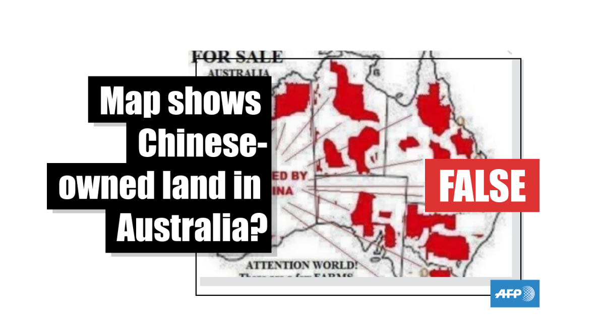 The claim is false; the map significantly overstates the proportion of Australian farmland held by China.
