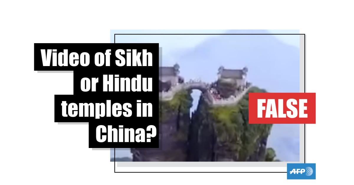 Both claims are false; the video does not show a temple or place of worship for Hindus or Sikhs. The video actually shows Buddhist and Taoist temples on different mountains in China.