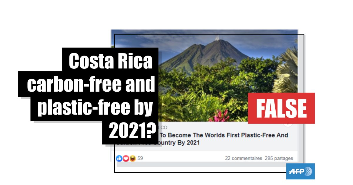 Websites, including returntonow.net and intelligentliving.co, published two similar articles entitled “Costa Rica Set to Become First Plastic-Free, Carbon-Free Country by 2021”. They were shared more than 200,000 times on Facebook.