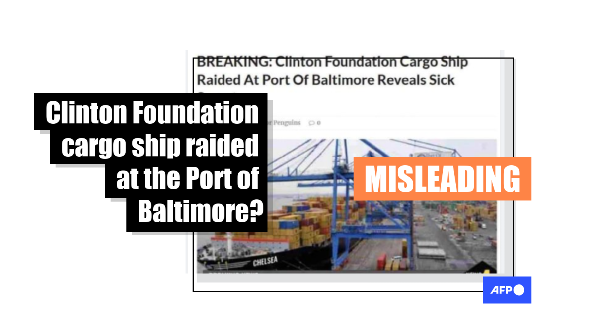 The headline of the purported news article reads: “BREAKING: Clinton Foundation Cargo Ship Raided At Port Of Baltimore Reveals Sick Secret”