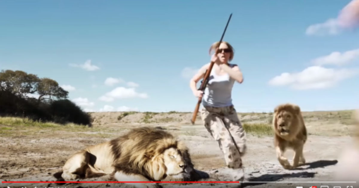 In the video, a smiling couple pose behind a dead lion. The woman is armed with a rifle. As the man adjusts the camera, a second lion appears behind them and charges. The woman and man run out of frame and the lion jumps towards them, before going out of shot. Screams and two gunshots are heard and then the lion comes back on screen, suggesting the hunters might be dead.