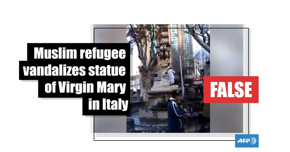Did a Muslim refugee vandalize a statue of the Virgin Mary in Italy? False