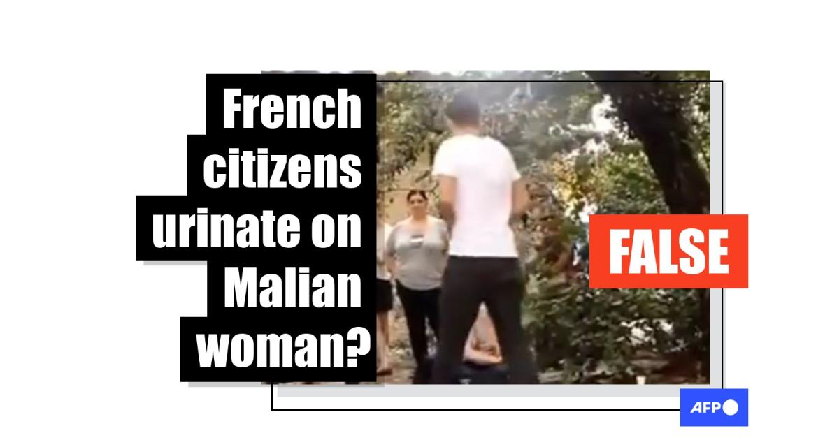 The tweet reads: “A group of French citizens caught on camera urinating on Malian Citizen after a new millitarey Regime end the relationship between Malian and France government Amid the atrocities Being committing against Malians in Mali by the government of France! (sic)”.