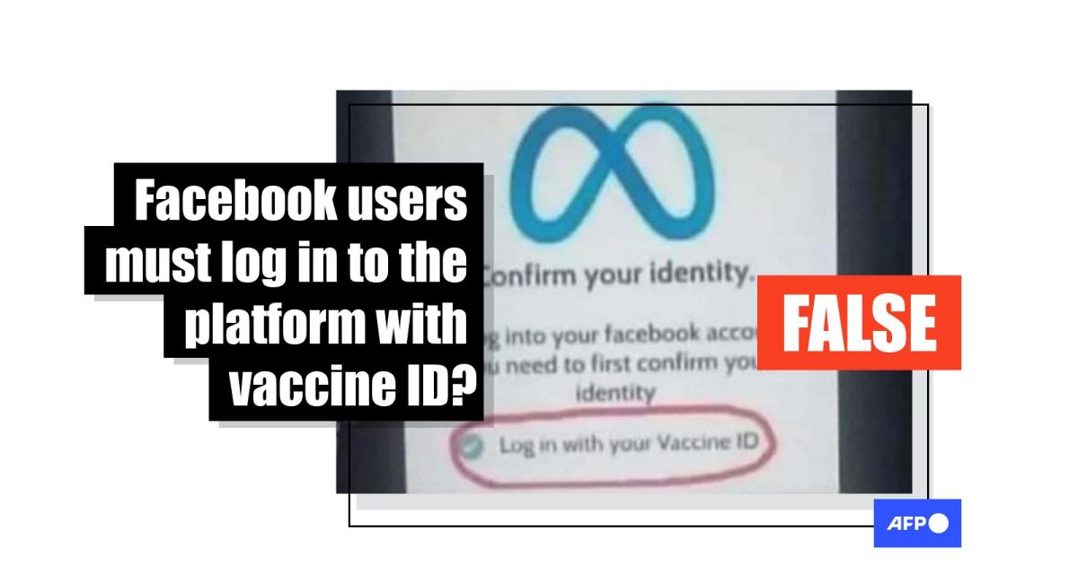 Image of Facebook login page requiring vaccination ID is fake