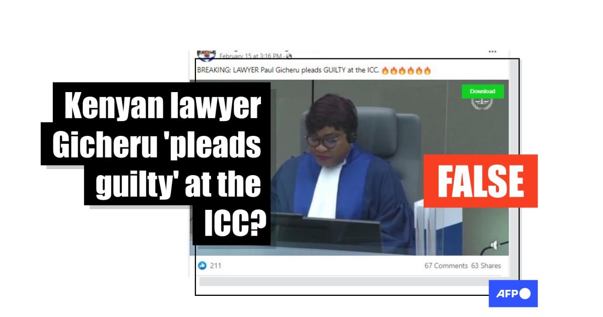 AFP Fact Check found that the video of his pleadings was digitally manipulated to falsely show Gicheru accepting guilt.