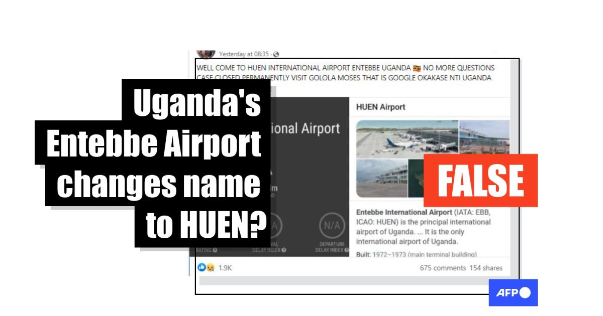 Name of Uganda's Entebbe International Airport has not been changed to HUEN