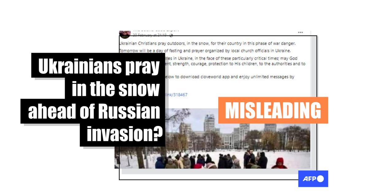 On February 20, 2022, a Nigerian Facebook page with more than 200,000 followers shared the image of people kneeling together in the snow with a caption reading: ”Ukrainian Christians pray outdoors, in the snow, for their country in this phase of war danger".