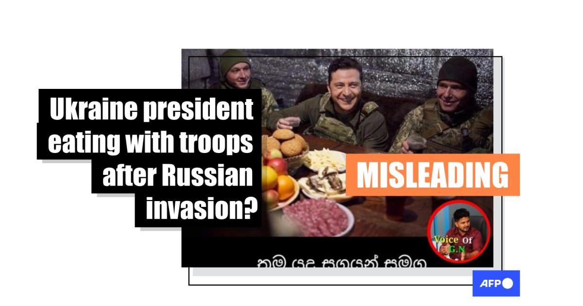 "Ukrainian president takes meals together with his allies in the battlefield," reads a Sinhala-language Facebook post shared on March 1.