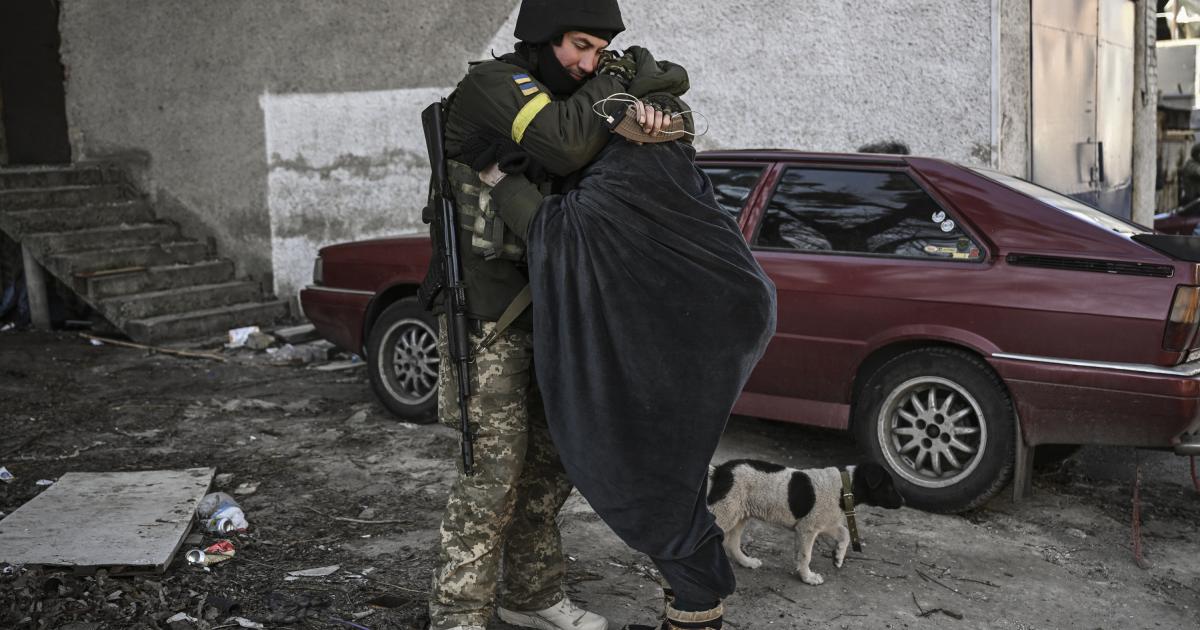 Ukrainian men between the ages of 18 and 60 were banned from leaving the country to help the fight against invading Russian forces, separating many families as women and children evacuate.