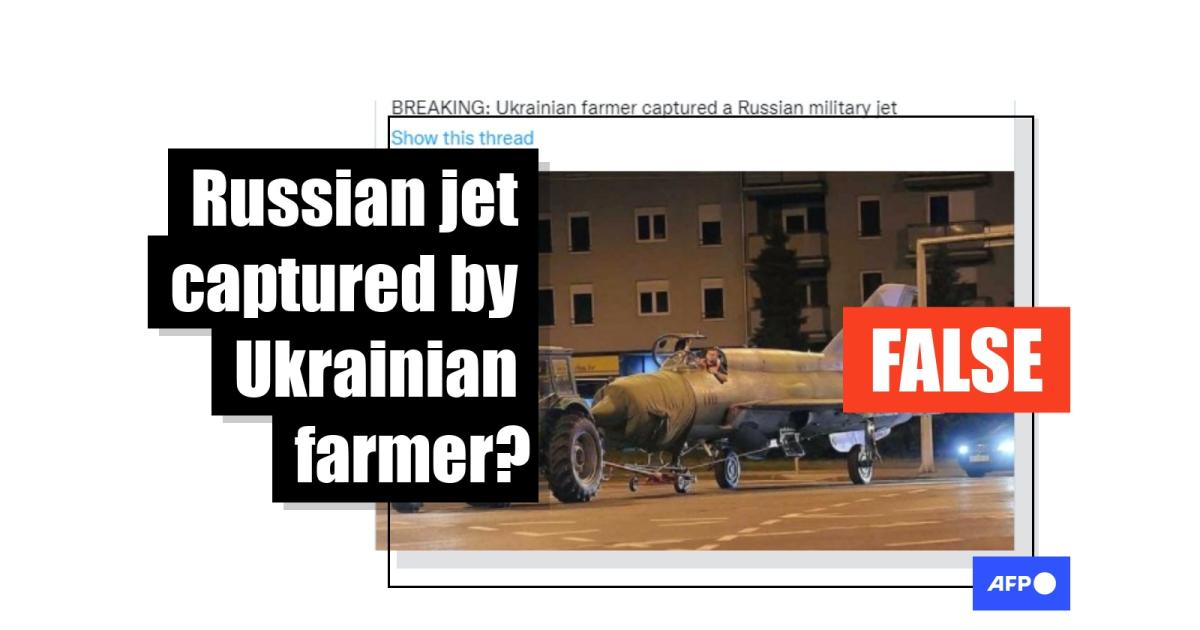 "BREAKING: Ukrainian farmer captured a Russian military jet," reads a screenshot shared in a Facebook post from March 10.