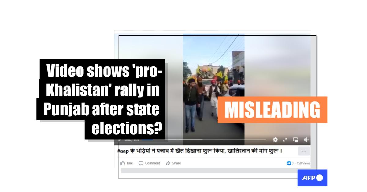It claims the clip shows Sikhs holding a rally for an independent homeland, called Khalistan, in India's northern Punjab state after the state election results were announced on March 10, 2022.
