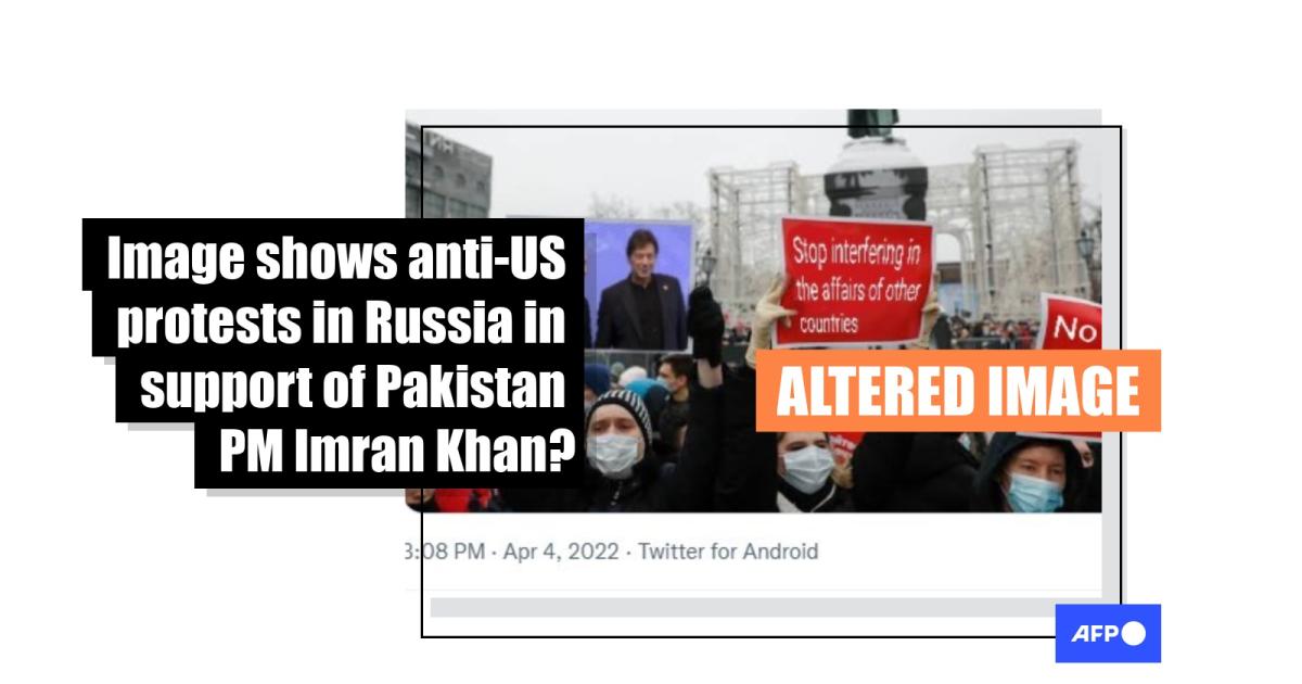 An image has been shared thousands of times in social media posts alongside a claim it shows an anti-US protest staged in Russia in support of embattled Pakistan Prime Minister Imran Khan. The posts circulated online after Khan accused Washington of trying to remove him from power, which it denies. But the image has been doctored. The original photo -- captured by the Associated Press news agency -- shows a 2021 protest in the Russian capital Moscow against the detention of Kremlin critic Alexei Navalny.