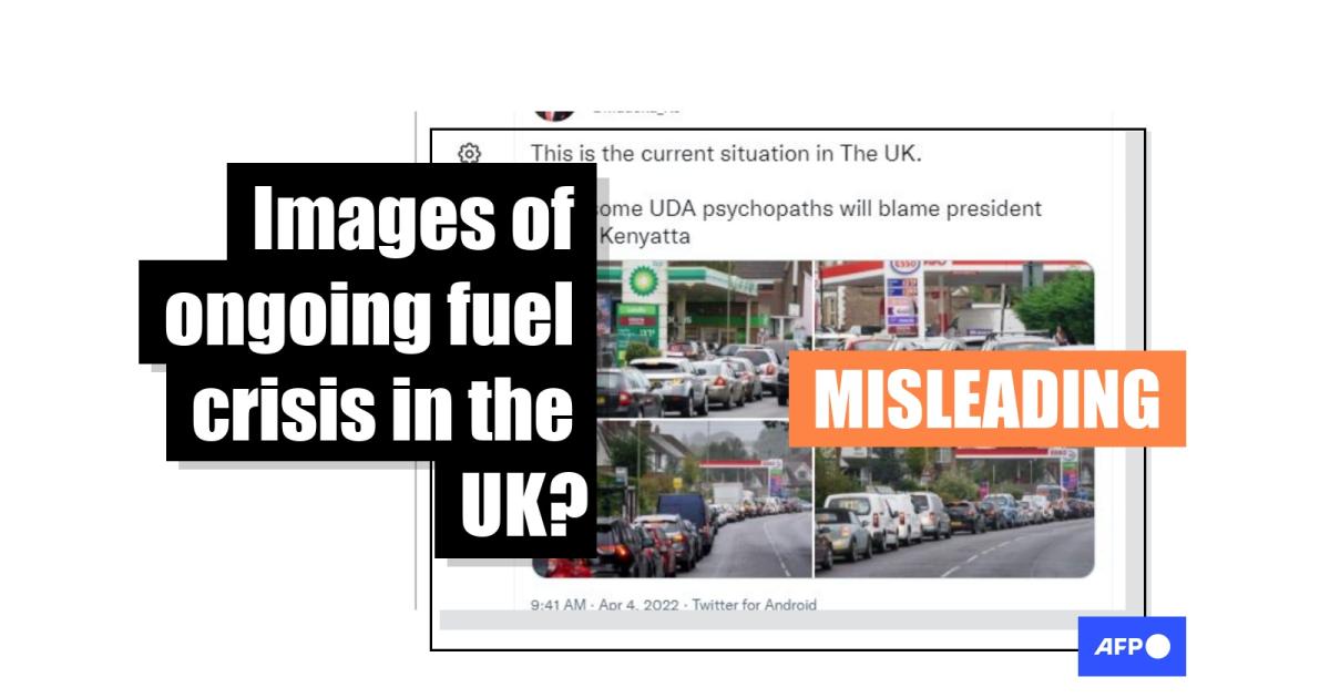 On March 4, 2022, this Twitter account shared four images of vehicles in long lines at petrol stations alongside a caption that reads: “This is the current situation in the UK. Then some UDA psychopaths will blame president Uhuru Kenyatta”.