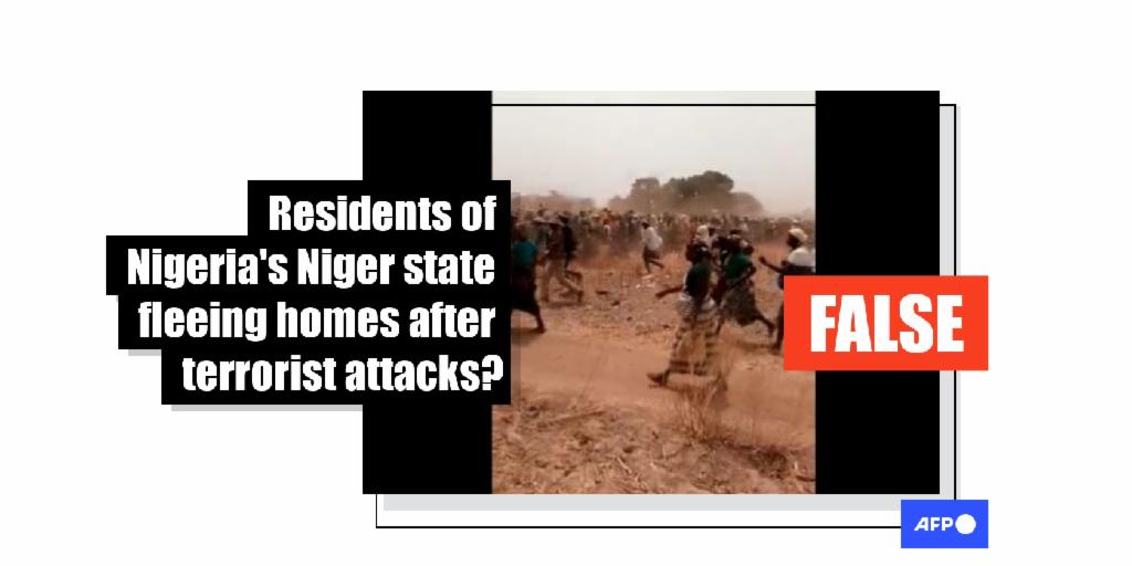 Footage of a crowd walking briskly along a dusty field was published in a tweet that claims the video captures residents of border communities in Nigeria’s northern Niger state who recently fled their homes after attacks by bandits. However, the claim is false. The clip was filmed in 2021 when gunmen stormed the northern village of Solhan in Burkina Faso, massacring civilians and displacing residents.