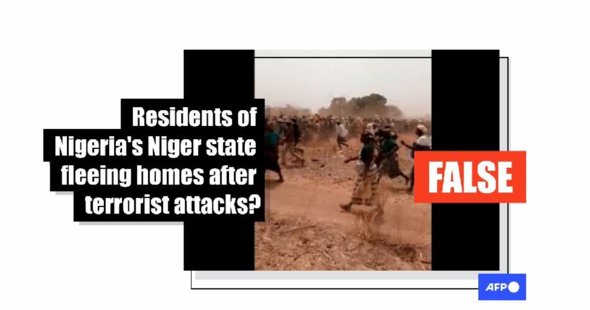 Footage of a crowd walking briskly along a dusty field was published in a tweet that claims the video captures residents of border communities in Nigeria’s northern Niger state who recently fled their homes after attacks by bandits. However, the claim is false. The clip was filmed in 2021 when gunmen stormed the northern village of Solhan in Burkina Faso, massacring civilians and displacing residents.