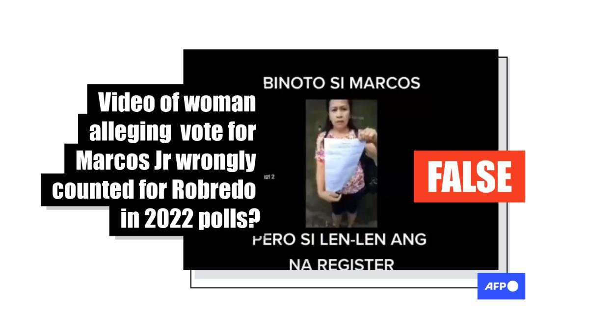 The four-minute clip states the woman complained that her vote for Marcos Jr was counted for Honasan. She did not mention Robredo in the interview.