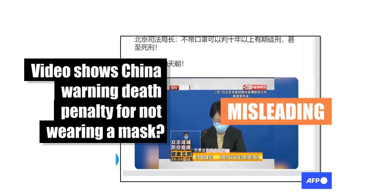 Misleading video suggests people in China 'face death penalty for not wearing a mask'