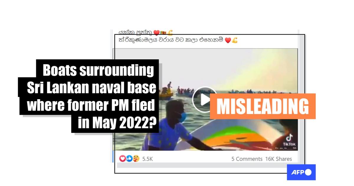 After Sri Lanka's prime minister resigned over attacks on peaceful protesters by his supporters, Facebook posts shared a video they claimed showed boats surrounding a naval port where he fled, in a bid to stop him leaving the country. The footage actually shows fishermen gathered for a religious ritual at a different point in the eastern Sri Lankan waters in March 2022, two months before Mahinda Rajapaksa quit.
