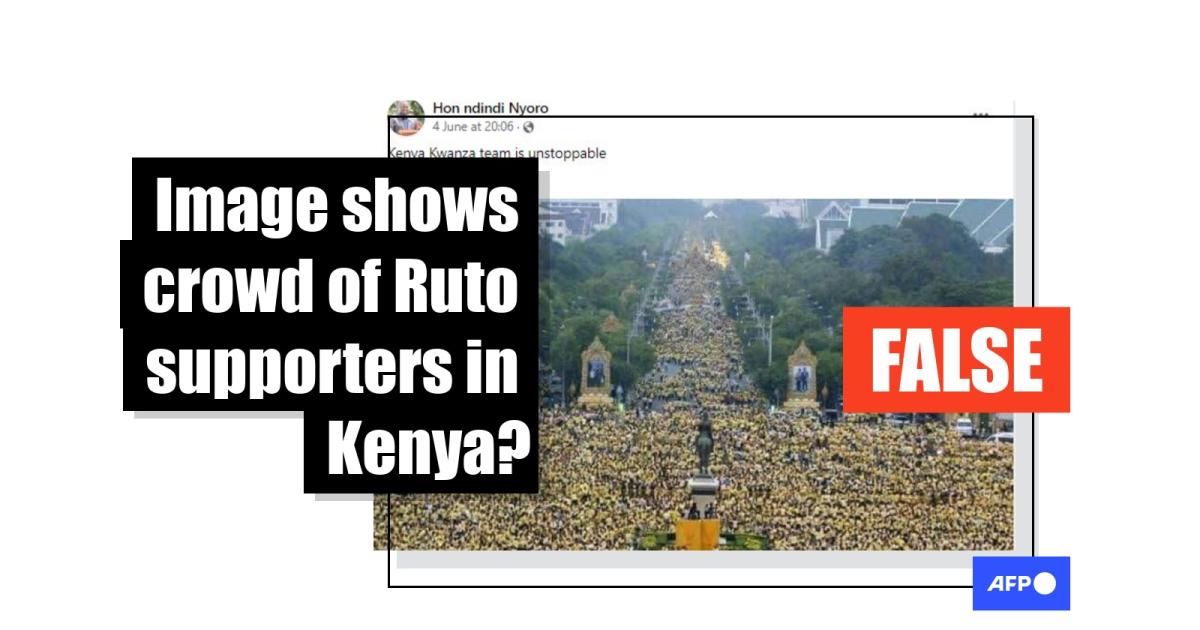 While yellow happens to be one of the colours used by Ruto’s political party United Democratic Alliance (UDA), the image does not show his supporters. In fact, this video report by Al Jazeera on the Thai king’s celebrations captures the exact angle of the picture used in the misleading posts.