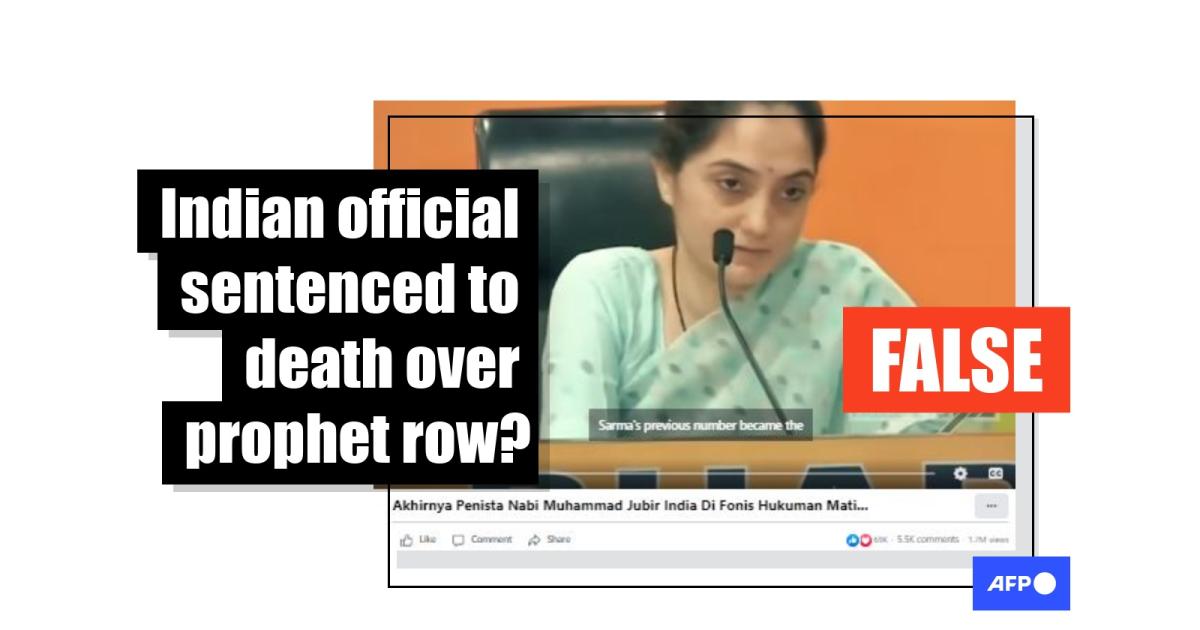 "Finally, the Indian spokeswoman who blasphemed Prophet Muhammad has been sentenced to death," reads an Indonesian-language Facebook post shared on June 9, 2022.