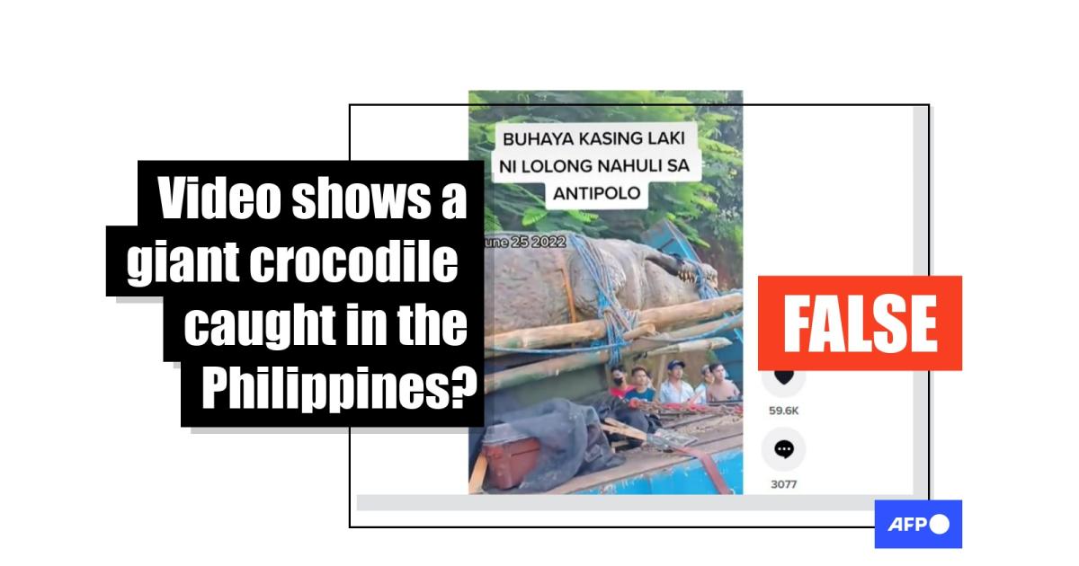 It was viewed over 1.6 million times with a Tagalog-language text overlay that translates as: "A CROCODILE AS LARGE AS LOLONG WAS CAUGHT IN ANTIPOLO".