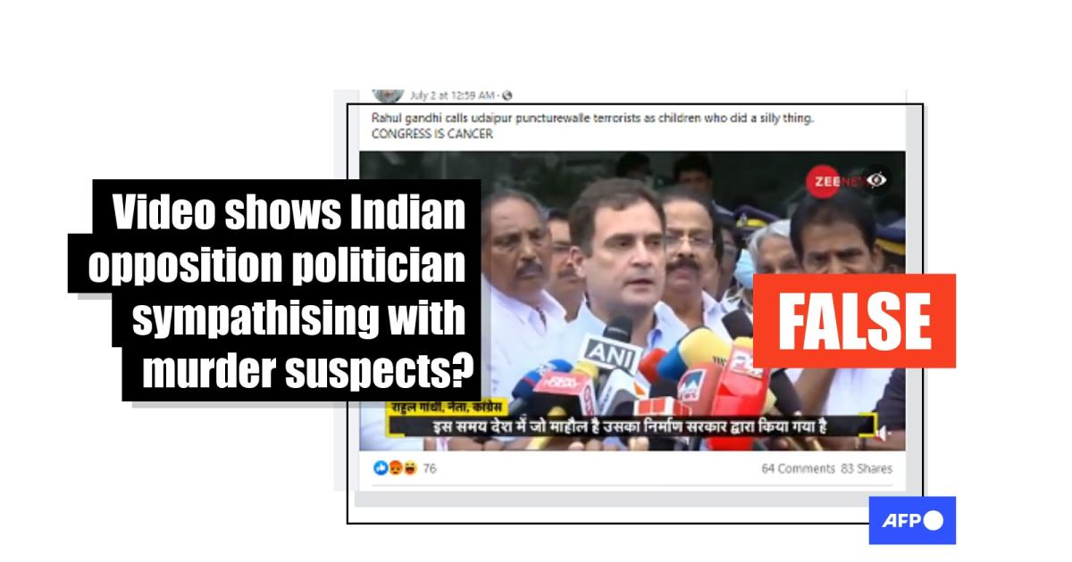 AFP found no official reports about Gandhi making comments on the Udaipur murder suspects.