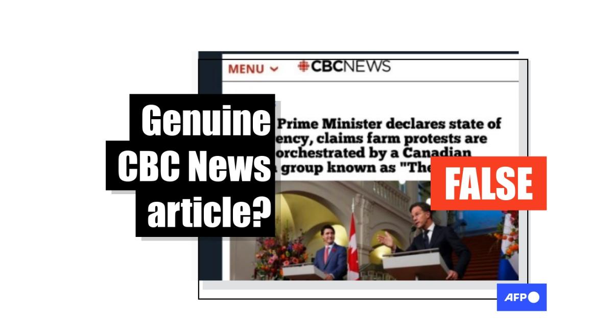 Contacted by AFP, CBC spokesman Chuck Thompson said: "We can confirm this is not a real CBC News article."
