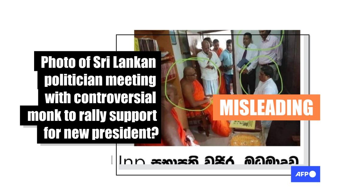 It was overlaid with Sinhala-language text that claims it shows Wajira Abeywardana -- chair of Wickremesinghe's party -- seeking support for the latter's election as president.