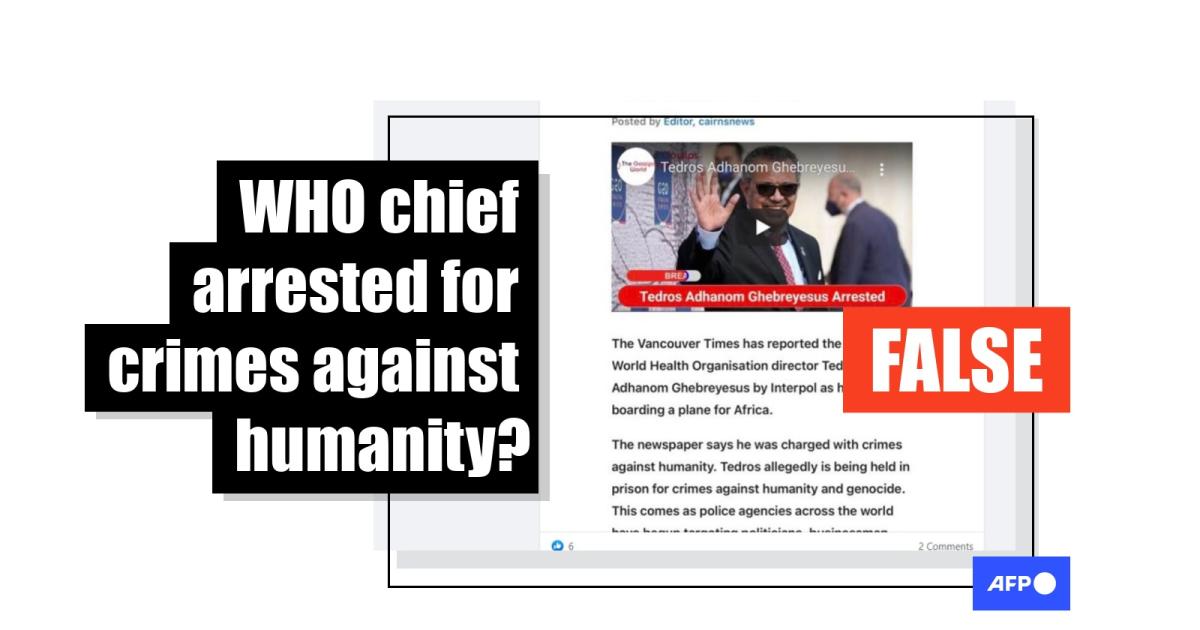 Satirical report of WHO chief's 'arrest' shared as genuine news article