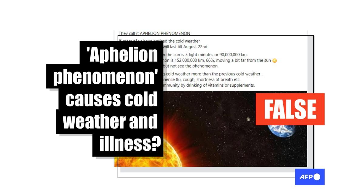 Astronomers Genevieve Soucail and Andrea Sánchez, who spoke to AFP Fact Check in Uruguay, said the aphelion, an annual event which took place this year on July 4, 2022, has no effect on Earth’s temperature and human health.