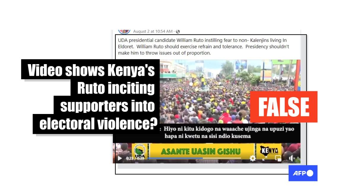 Video miscaptioned to create impression Kenyan presidential aspirant Ruto was inciting violence
